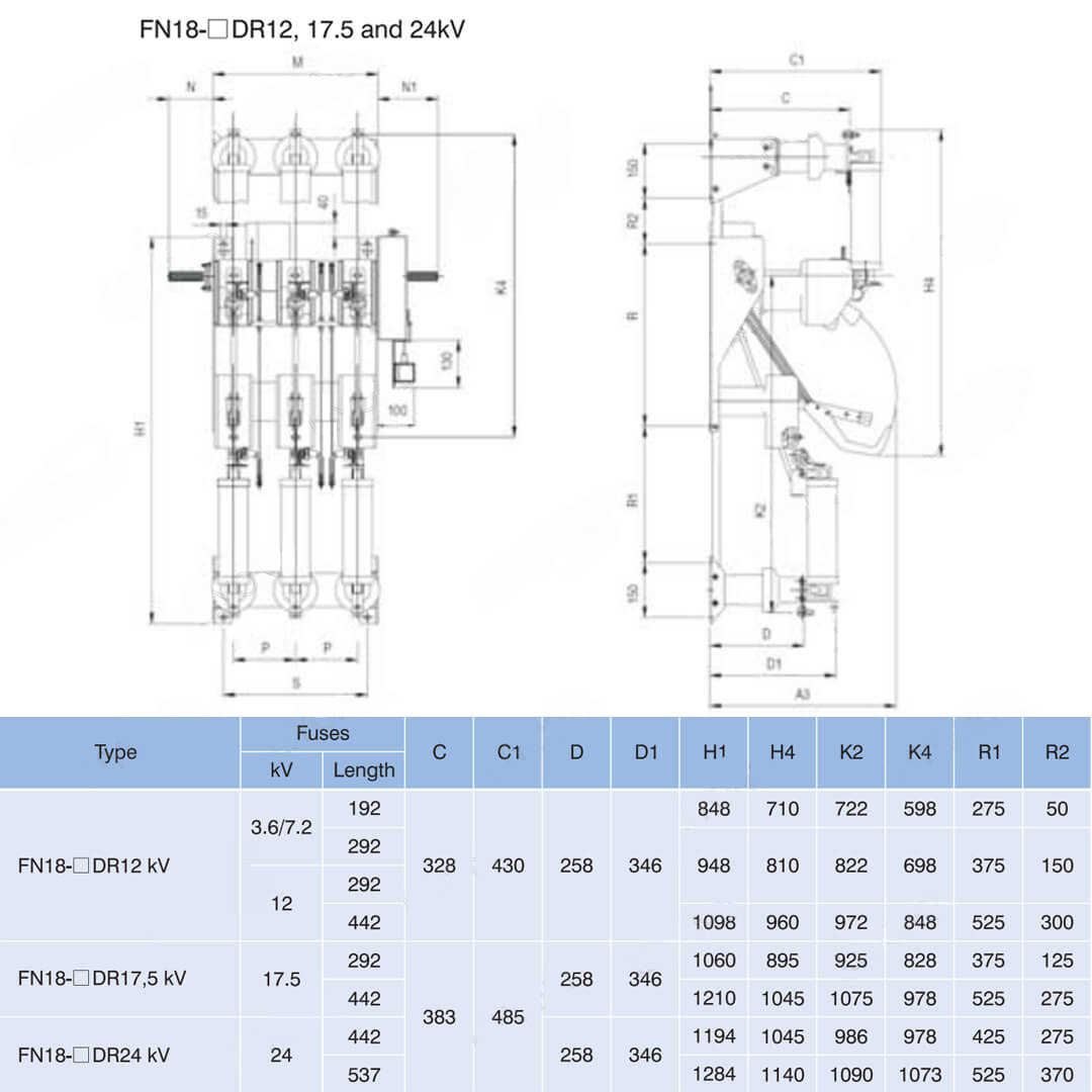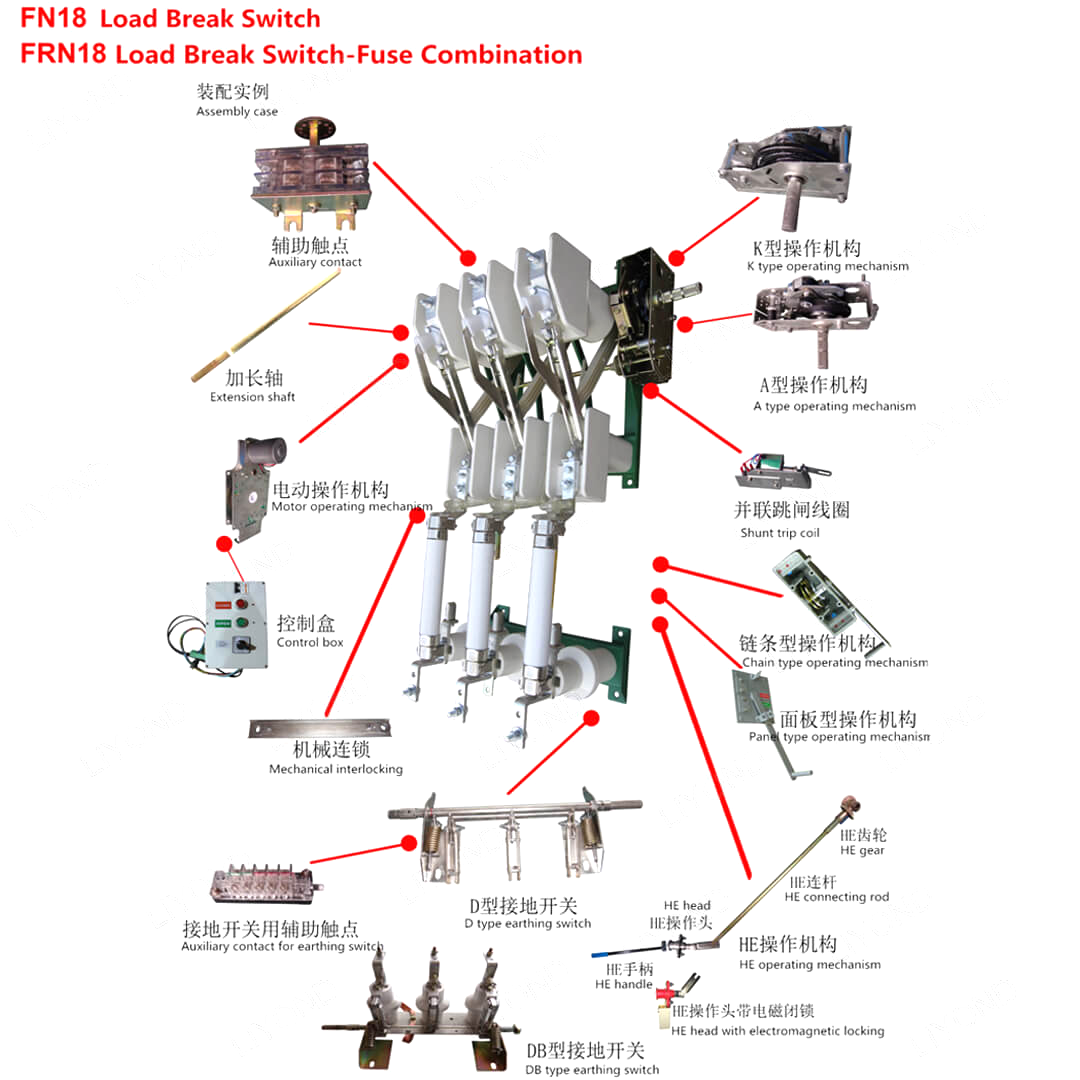 Ngalihake FN18 lan ngemot kombinasi pemancar ngalih minangka voltase dhuwur, switch beban dhuwur-dhuwur sing nggabungake kompresi udara busur lan ekspresif gas sing diasilake gas. Gabungan switch load lan sekring nggabungake kaluwihan ngalih beban karo para sekring kanggo ngalih pembebasan load ing sembarang pamindhahan sing dirating ing kombinasi kanthi arus sekring lan impinger.